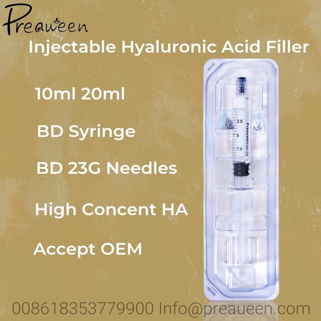 Shandong Light year biotechnology have unique technology of monophase cross link gel, It provides technical support for producing excellen fillers,the present invention provides highly injectable, long-lasting hyaluronic acid-based hydrogel dermal filler compositions made with a di-amine or multiamine crosslinker in the presence of a carbodiimide coupling agent. The compositions are substantially optically transparent and exhibit reduced or no perceptible blue discoloration when administered into a patient’s skin. In some embodiments, the crosslinker is 4-aminobutyric acid (4 AA). Unlike diamines that can only crosslink two HA chains, 4 AA has four amine functional groups and, therefore, can significantly enhance crosslinking efficiency in the resulting hydrogels. In addition, the crosslinking efficiency results in robust hydrogels that can be sterilized by moist steam without imparting structural damage to the gels.